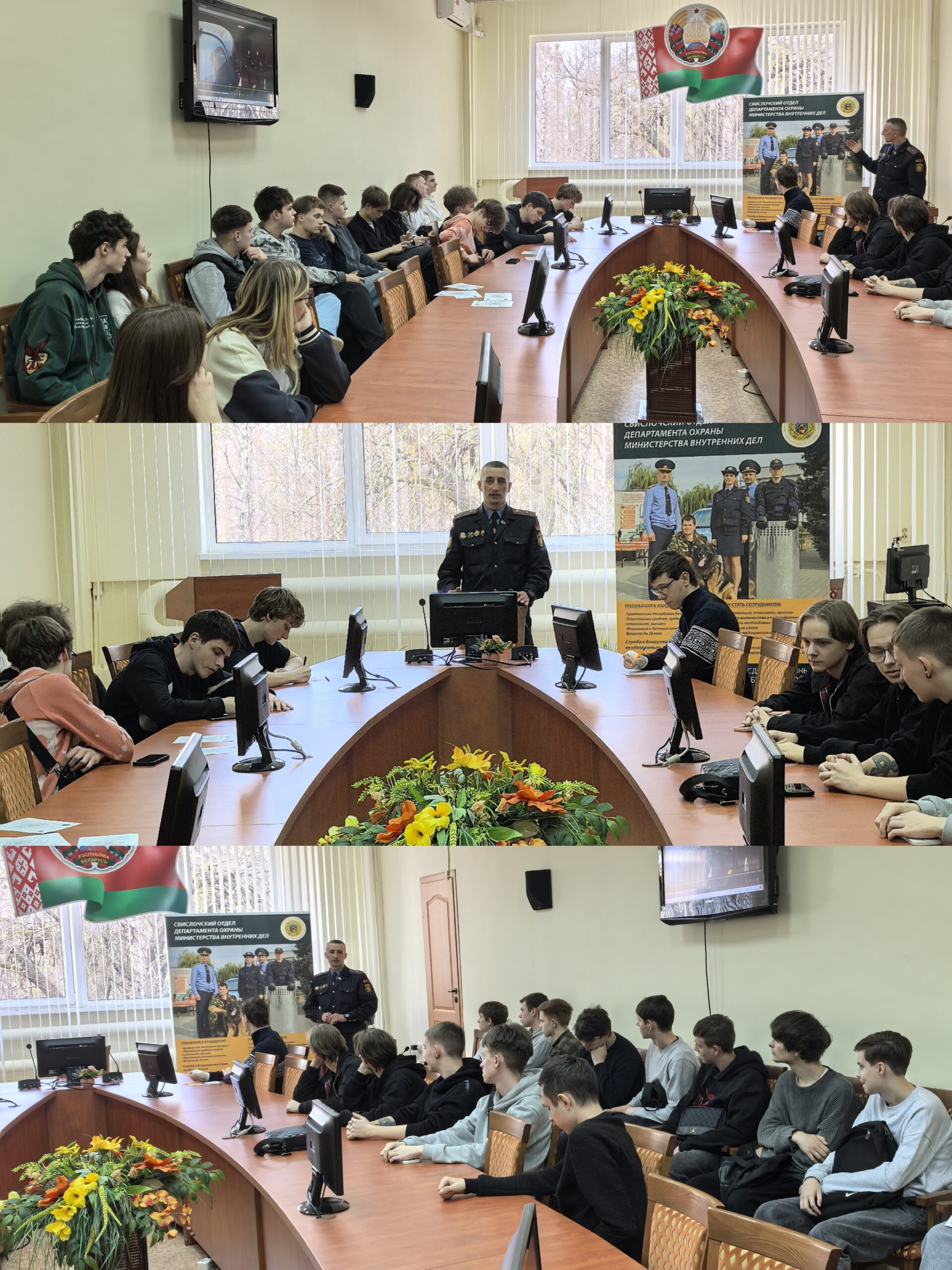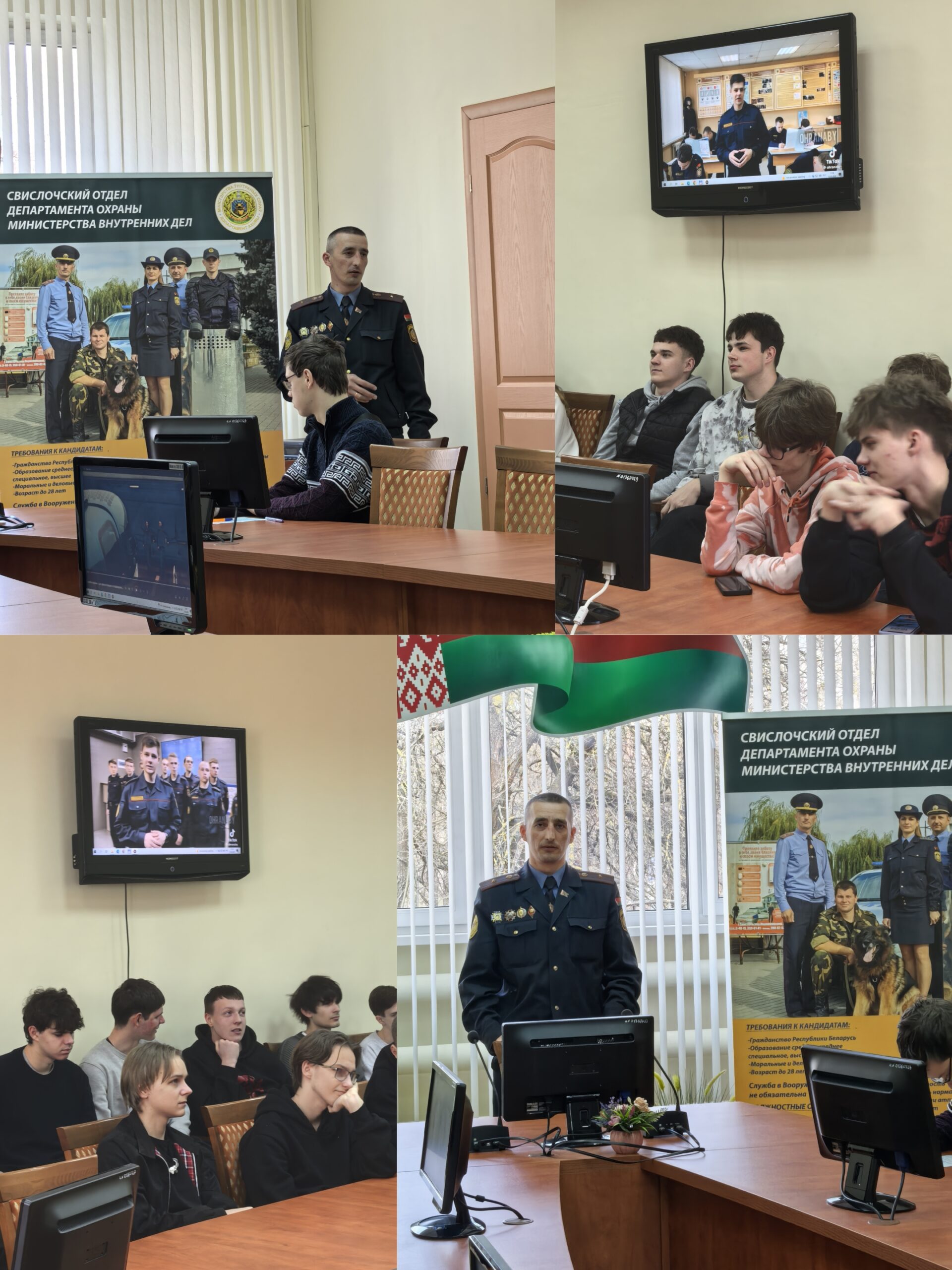17.03.2026 г. состоялась встреча учащихся групп 43ТП, 07ЭС, 07М с помощником начальника Свислочского отдела по идеологической работе и кадровому обеспечению Департамента охраны Министерства внутренних дел майором милиции Августинчик Виктором Викторовичем. Учащиеся узнали об особенностях трудоустройства, службы, специфике работы и возможностях дальнейшего обучения в ВУЗах РБ.